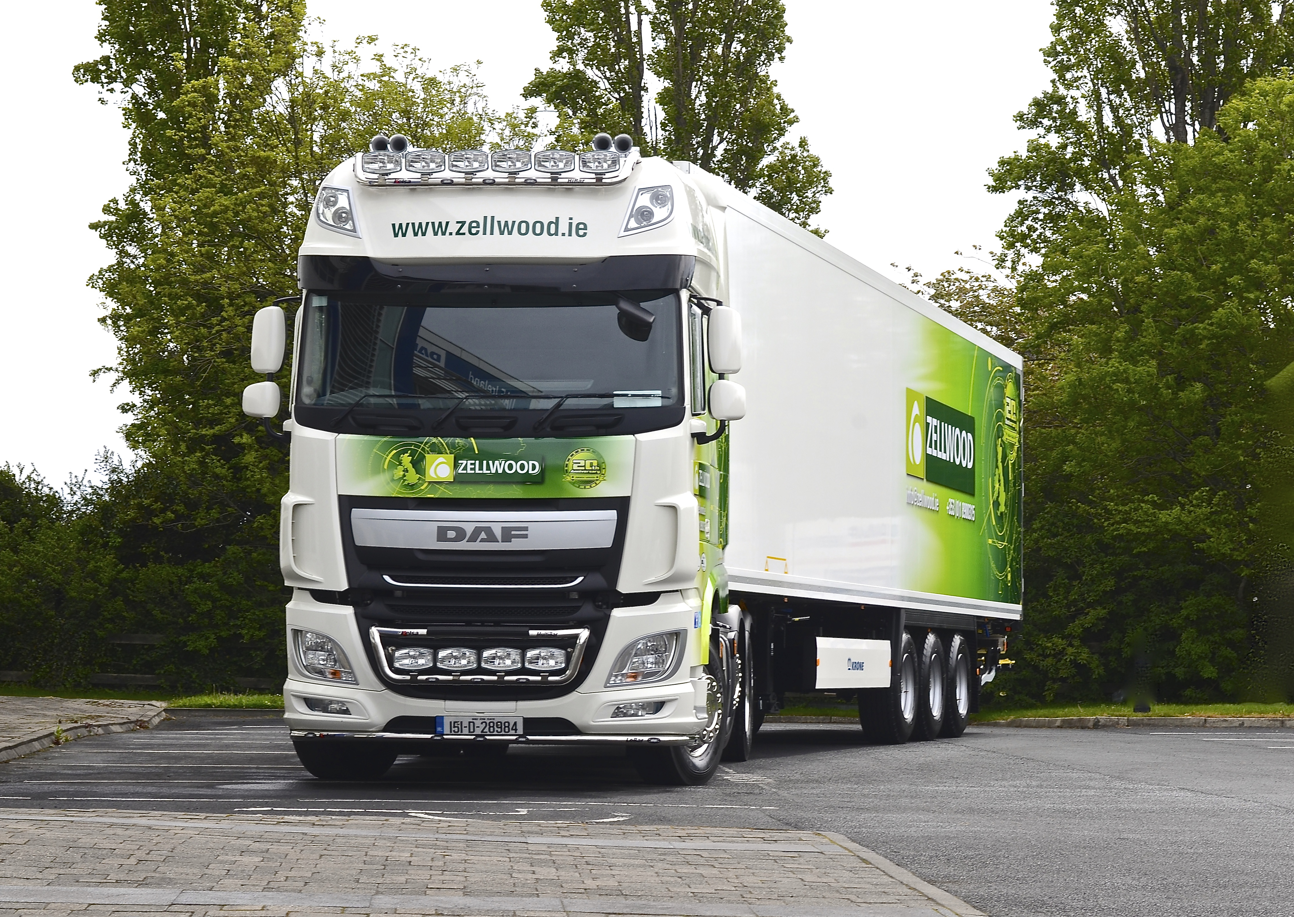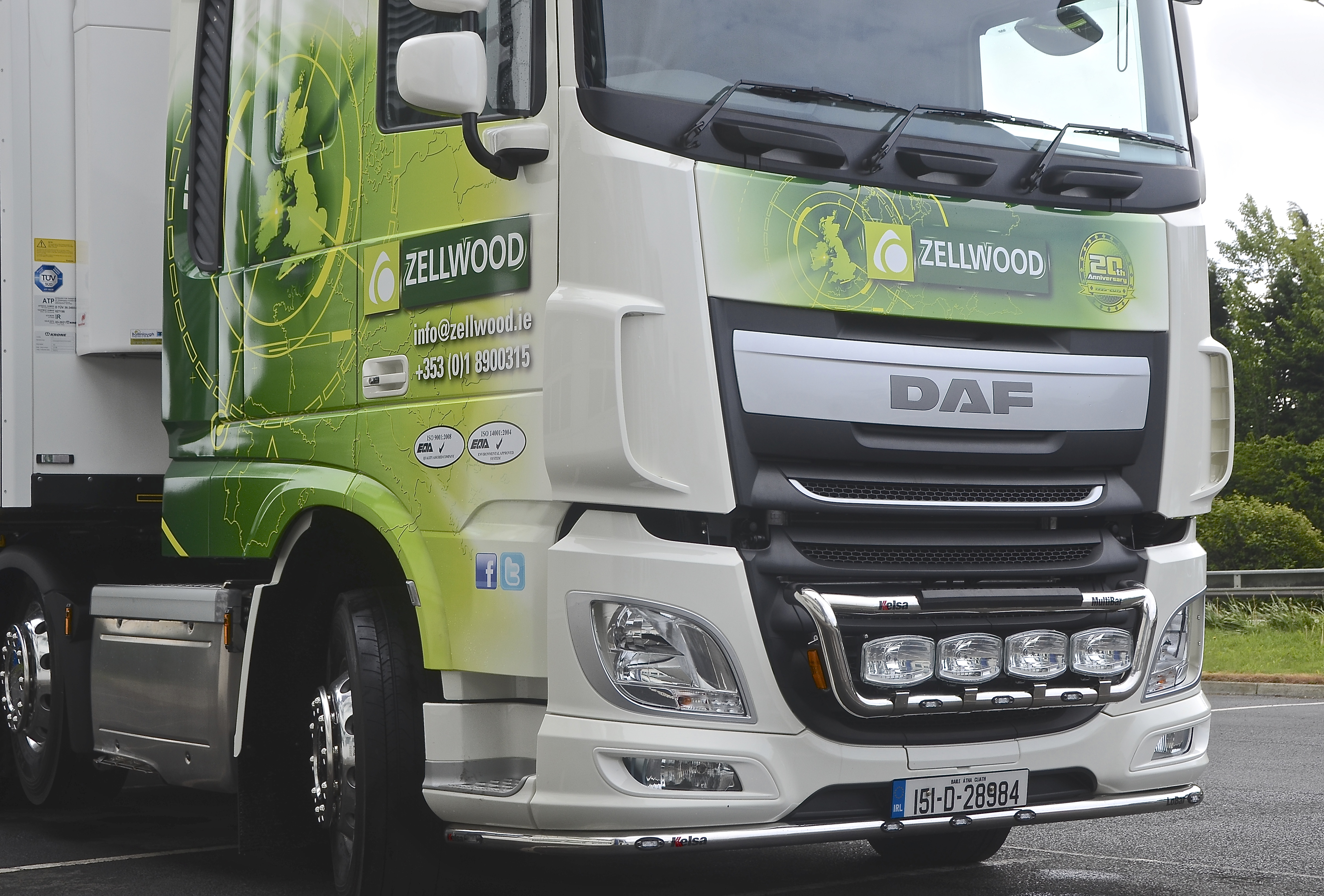 Over the last twenty years the company has worked away quietly, simply concentrating on the job at hand without fanfare. What has brought Zellwood to the fore now is the expansion of its fleet with ten new tractor units from DAF Distributors Ireland (DDI), which will soon be joined by six new Krone semi-trailer fridge units. While the DAF XFs are 460 hp 6x2s, one of the combinations is a XF 510 Super Space Cab. This XF will become the canvass for a special 20th Anniversary celebration livery.